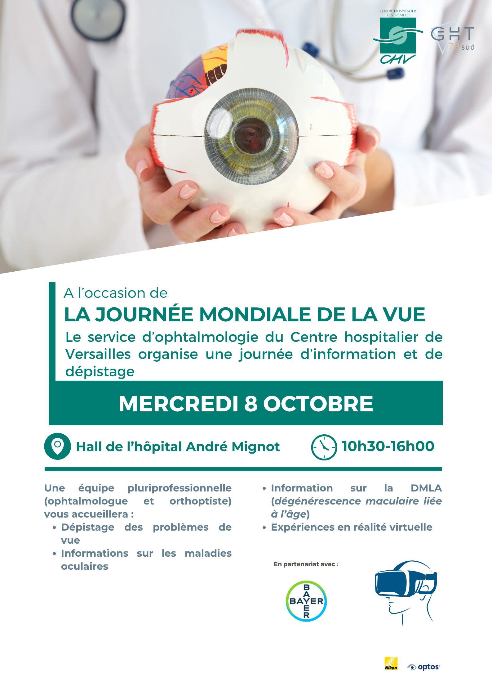 Le mardi 7 octobre 2025, de 10h à 16h dans le hall de l’Hôpital André Mignot, le Centre hospitalier de Versailles organise une journée de sensibilisation sur le cancer du sein.