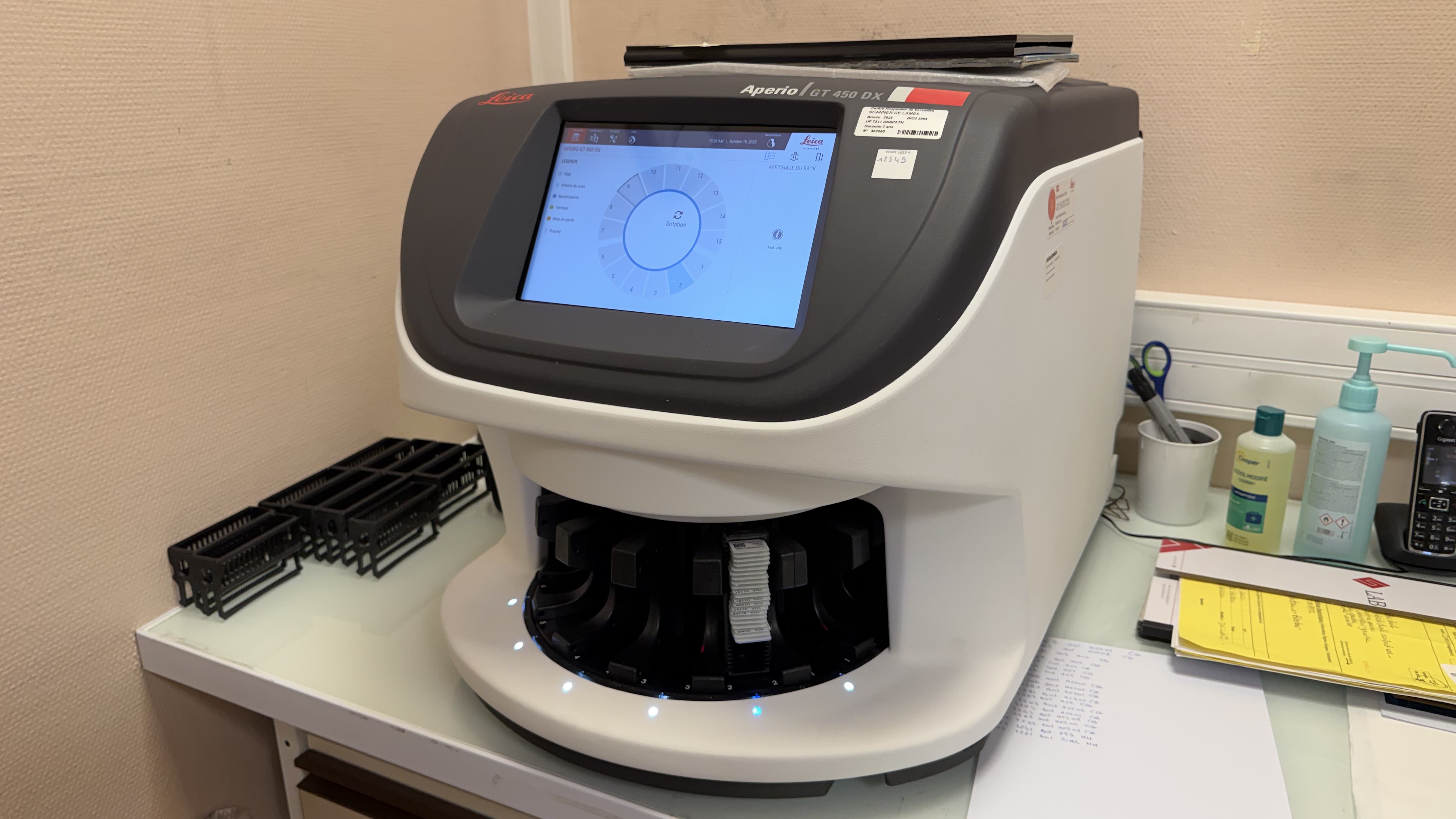 Traditionnellement, les diagnostics anatomopathologiques sont réalisés à partir de lames de verre observées au microscope. Le CHV franchit un cap en adoptant la numérisation de lames en haute résolution (WSI – Whole Slide Imaging), permettant aux pathologistes de consulter les lames directement sur écran, avec une précision supérieure à celle du microscope.